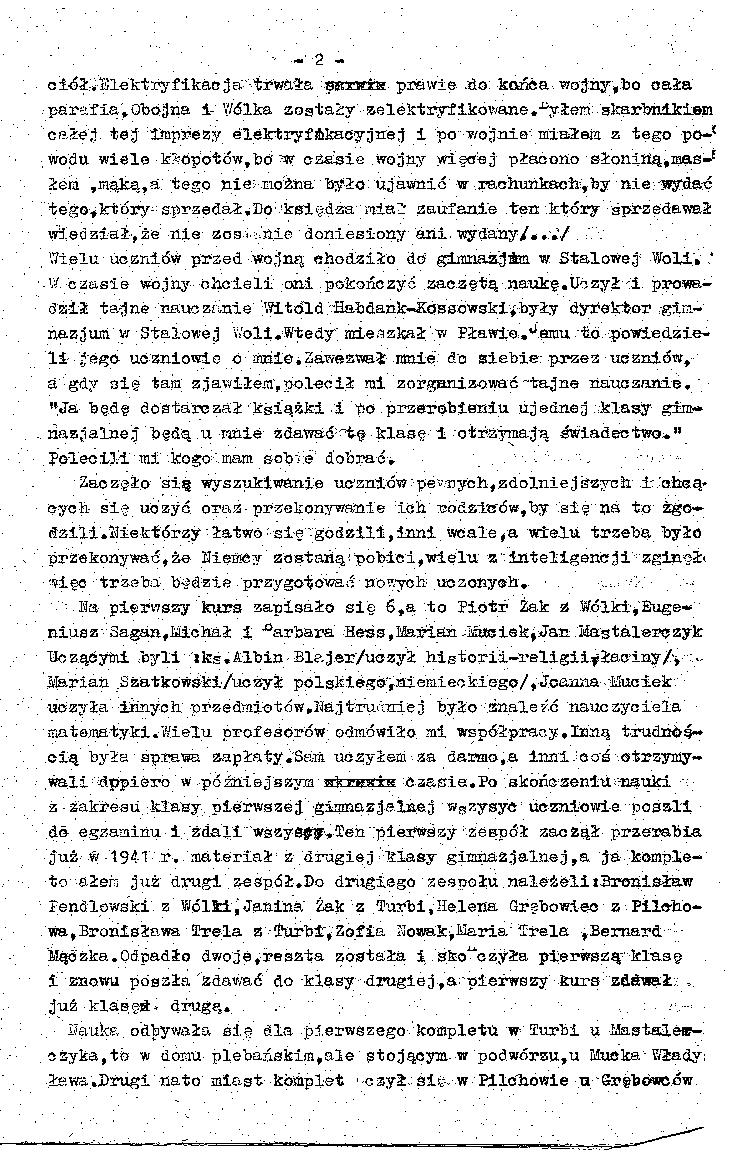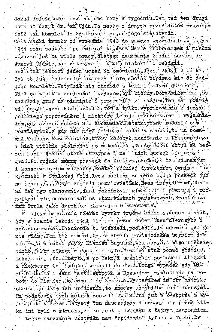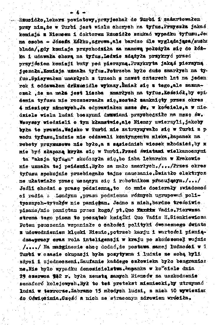 Relacja ks. Albina Blajera, w latach 40. XX w. wikarego, a następnie proboszcza w Turbi (od 1944 do 1978) dotycząca tajnego nauczania, a także pozorowanej epidemii tyfusu w tej miejscowości. Te ostatnie wydarzenia mają związek z działalnością lekarzy Stanisława Matulewicza i Eugeniusza Łazowskiego.